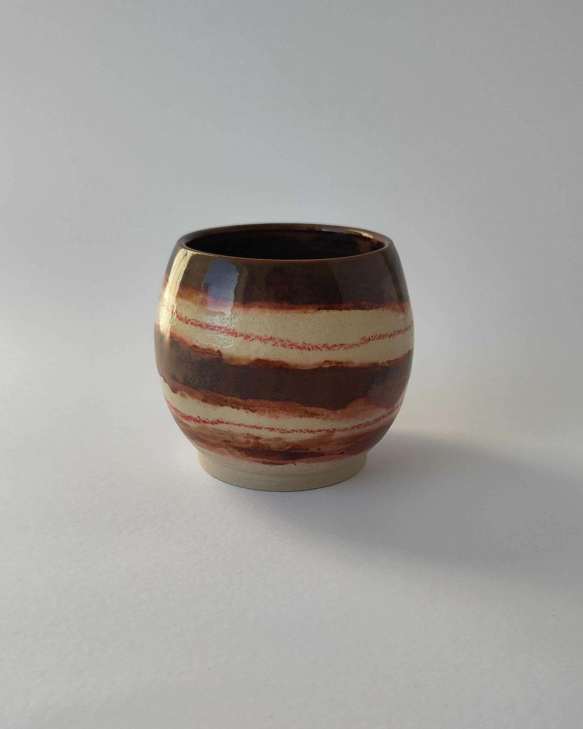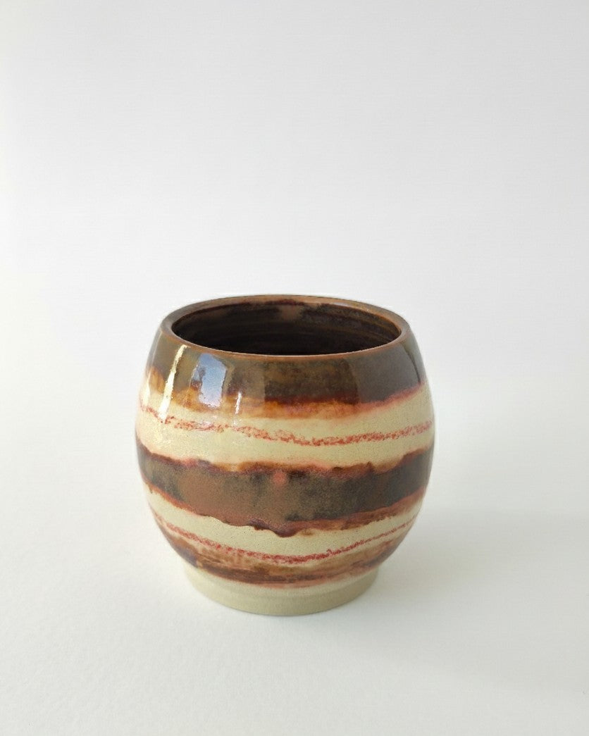 A study in control and chance, this vessel transforms functional form into a canvas for experimentation. Each piece is high-fired and hand-glazed, with surfaces completely unique; shaped by the dialogue between color and fire.