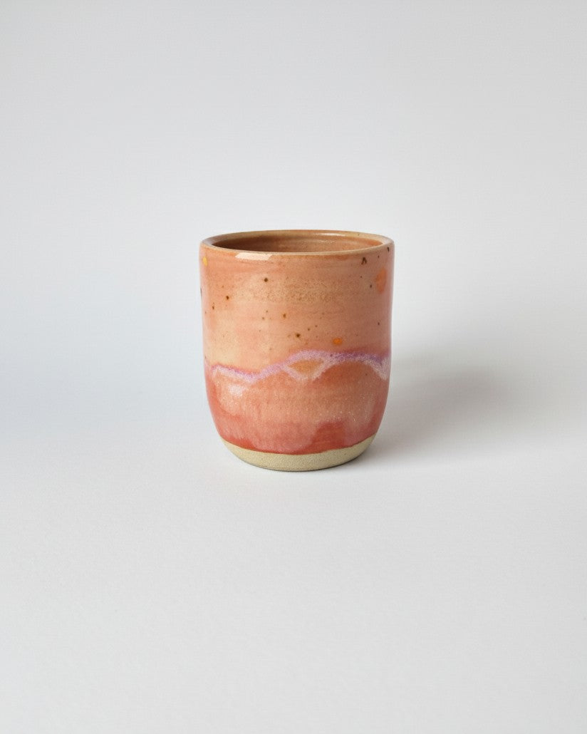 A study in control and chance, this vessel transforms functional form into a canvas for experimentation. Each piece is high-fired and hand-glazed, with surfaces completely unique; shaped by the dialogue between color and fire.